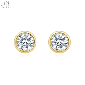 Hot Bán Hàng Ngày Mặc Đơn Giản Bezel Thiết Bất Tự Nhiên Kim Cương Stud Bông Tai 18K Vàng Tinh Khiết Bông Tai Đồ Trang Sức Cho Phụ Nữ Của Quà Tặng